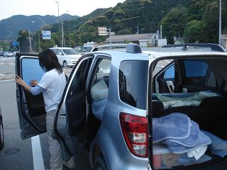 宿泊地のひわさの道の駅で、車中泊の設営中。慣れたよ♪ |