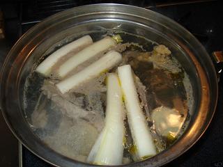 アクが出ますので、丁寧にすくって透明なだしに仕上げます |
