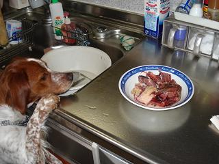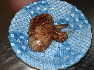 できあがり♪ 塩は使っていないのに、ちょうど良い塩気がある何とも旨いソースが出来ました。 (反省・白いお皿を使えばよかった) |