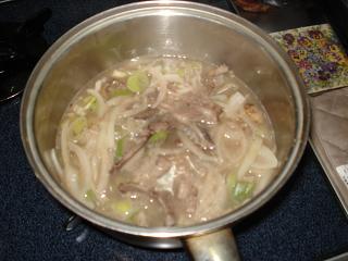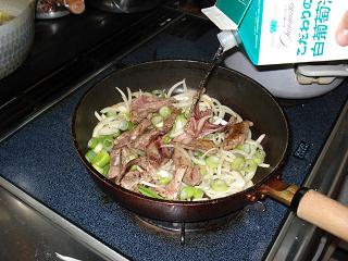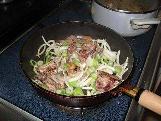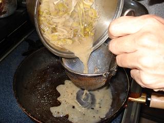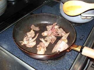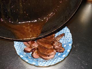 フライパンからなべに移して、水気が無くなる位まで弱火で煮込んで、鴨のジューを作ります。 |