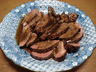 鴨肉料理の定番、鴨胸肉ソテー・シリーズ。今回は、鴨のガラを使ったソースを作りました。 |